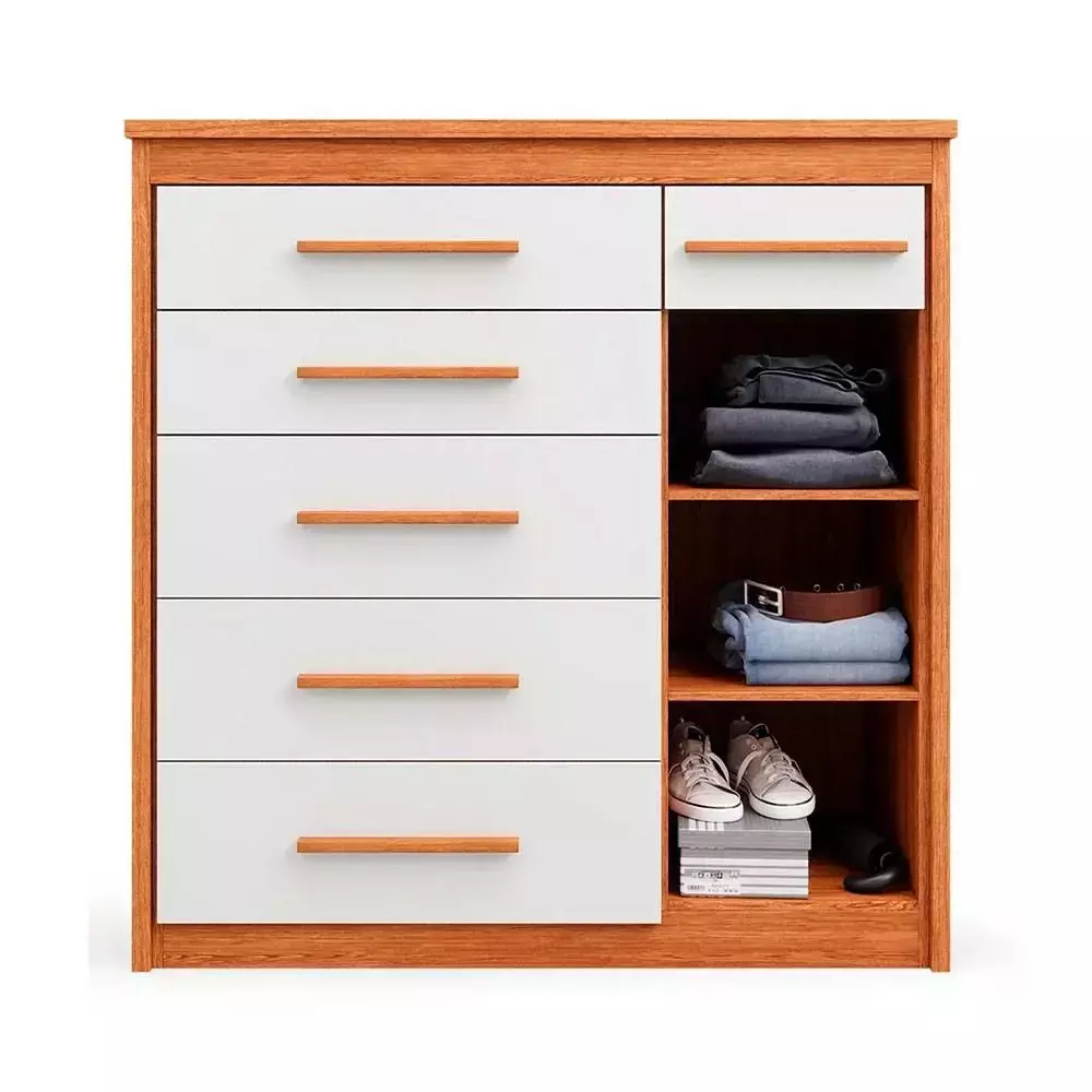 6 Gavetas que Suportam 5kg: Oferecem amplo espaço de armazenamento para roupas e objetos pessoais, cada uma suportando até 5kg de peso.