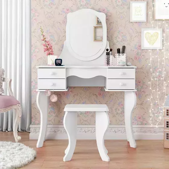 As penteadeiras geralmente roubam a cena e encantam. É hoje um dos móveis mais desejados para integrar a decoração com muito glamour. A penteadeira Princesa, vem com seu visual clássico contemporâneo tornando-a mais charmosa. Conta com 4 gavetas, espelho e banco que trás com ela a funcionalidade de poder guardar de forma organizada produtos que vão fazer sobre sair a beleza feminina.